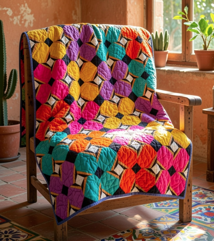 Join us for a vibrant and cultural quilting adventure with the Flores Quilt! This foundation paper-piecing class celebrates the joyful, colorful paper flowers found in traditional Mexican home decorations. You’ll create stunning 7” x 7” blocks featuring bold, radiant floral shapes in bright, saturated fabrics that mimic the festive energy of Mexican artesanias. Perfect for beginners to intermediate quilters interested in paper piecing, this project builds confidence with precise techniques while resulting in a cheerful throw-size quilt of personality and cultural inspiration. Bilingual pattern elements make it welcoming for English and Spanish speakers alike!